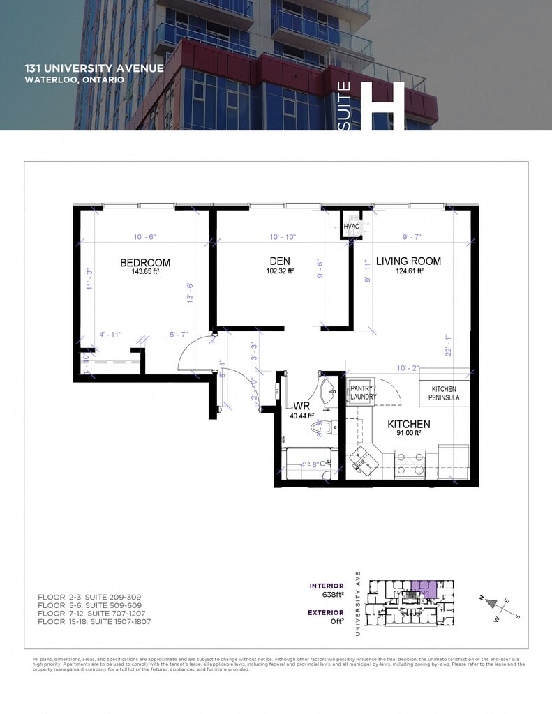 131 University offers 1 Bedroom apartments starting from $2,452 and having 638–752 sq ft. Here is the current pricing and availability:
