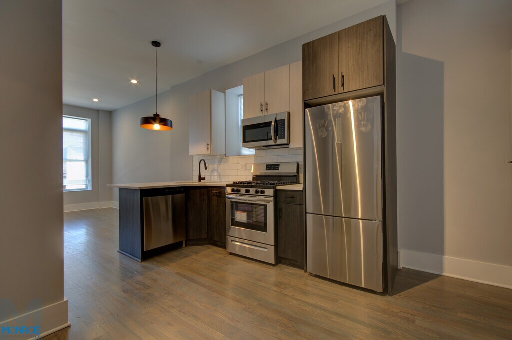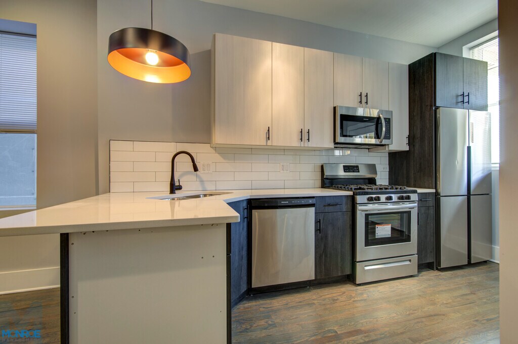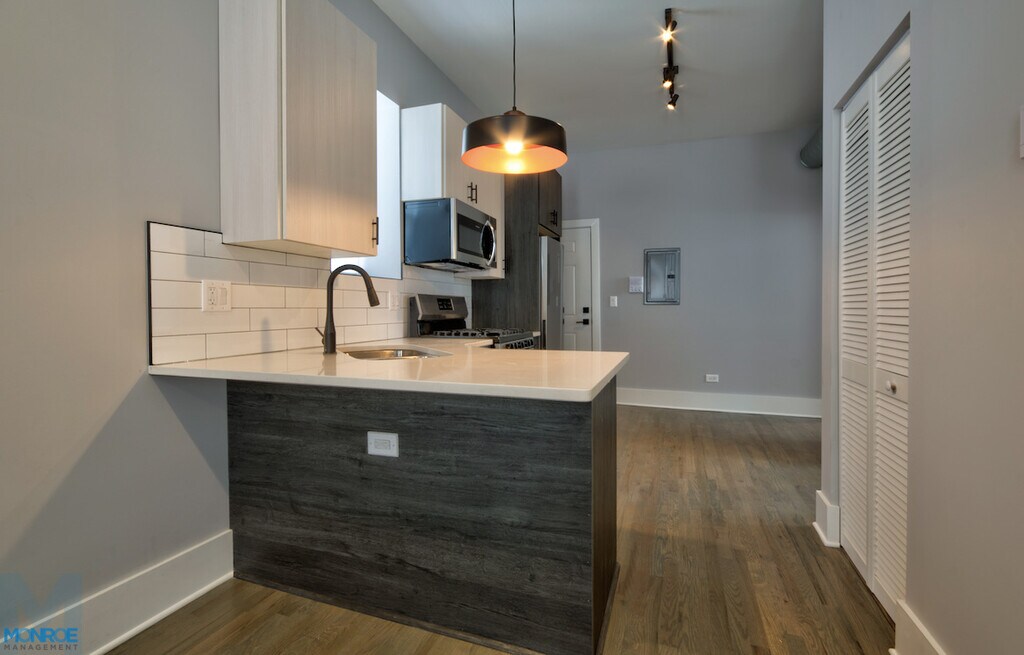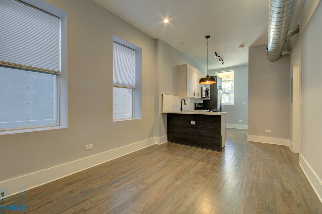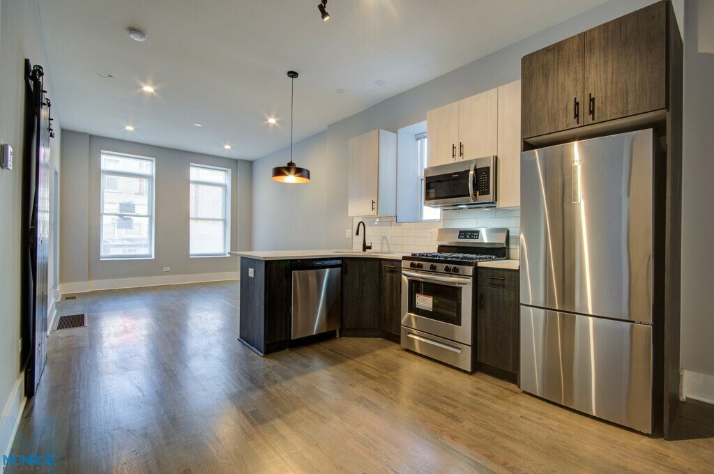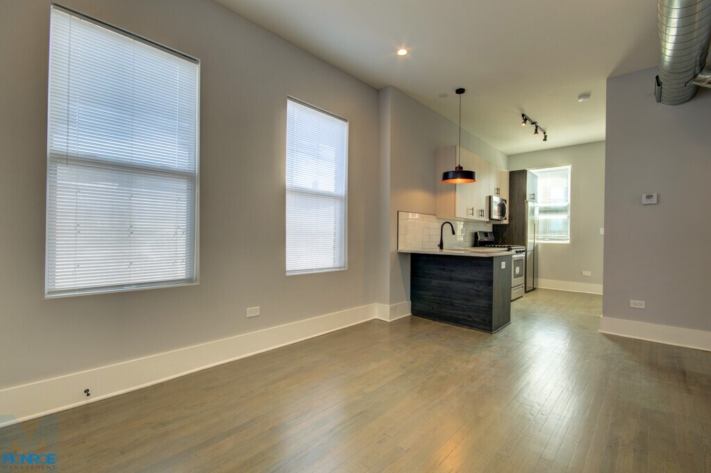 An absolutely great location at Erie and Ogden this beautifully finished building offers 2 bedroom, 1 Bathroom apartments with high ceilings in a great location.This incredible building underwent a complete renovation and now features high ceilings, white cabinets, Quartz countertops, subway tile, stainless steel appliances, and much more. The Bathrooms are very tastefully done with white subway tiles and Quartz countertops. Living here you will be right by Irish Noble Pub at the end of the block, Starbucks, Jimmy Johns, a UPS store and a Byline bank just two blocks away. The blue line is a short 4 blocks away for a super easy commute to all that Chicago has to offer. There is also a great park nearby named Eckhart Park.