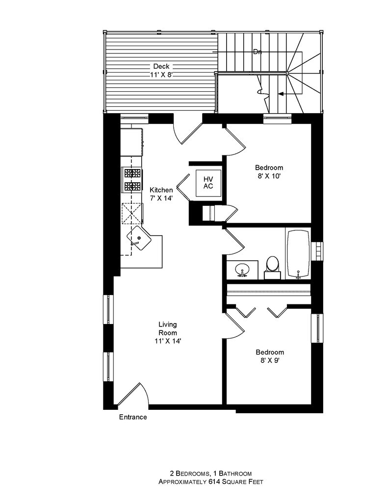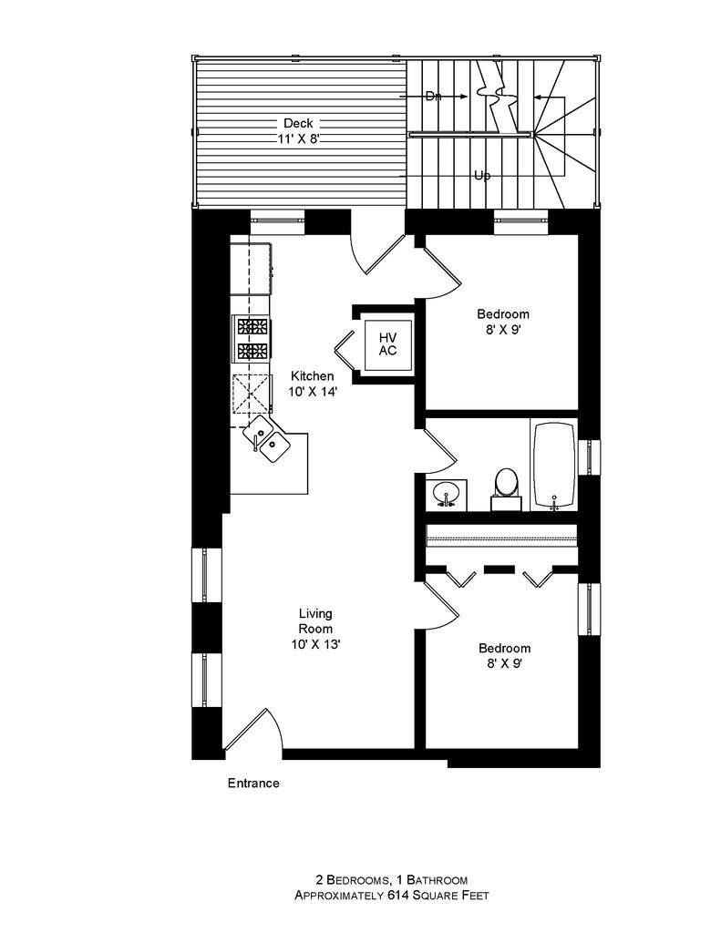 2 Beds, 1 Bath, 614 sq ftModel Gallery