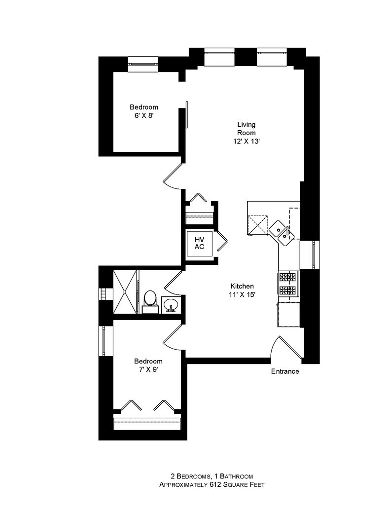 2 Beds, 1 Bath, 612 sq ftModel Gallery