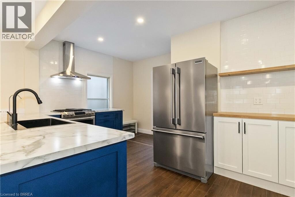 Experience the perfect blend of city living and serene privacy in this rare find—a newly renovated 2-bedroom,1-bath home located in the heart of Terrace Hill. This charming property offers a unique opportunity for those seeking a peaceful retreat with easy access to urban amenities. This home sits on a massive 227 ft deep lot,providing ample space for outdoor activities and a sense of rural tranquility. The covered area off the back of the home offers additional storage for your outdoor equipment,ensuring your tools/toys are kept safe and organized.Designed with entertaining in mind,the living,dining,and kitchen areas are obstruction-free,creating an ideal setting for hosting guests. The open layout enhances the flow of natural light and provides a welcoming atmosphere.The beautifully designed kitchen is truly a chef's dream. It features a kitchen peninsula,a gas stove,and stainless steel appliances,along with a built-in pantry. An abundance of lower cabinetry ensures you have plenty of storage space for all your culinary needs. Indulge in the sleek,oversized walk-in shower equipped with a rainfall shower system. This feature offers a clean and modern aesthetic,adding a touch of luxury to your daily routine.The basement of the home includes a cozy rec room with brand-new carpeting. This versatile space is perfect for a home office,play area,or additional entertainment space. Laundry facilities are conveniently located in the basement,adding to the home's practicality. Enjoy your morning coffee on the inviting front porch while taking in the neighborhood's charm. The home's prime location offers easy access to all amenities. You're just a short distance from Brantford General Hospital and St. Paul/King George Rd.,ensuring that everything you need is within reach. Don't miss this opportunity to become the new tenants of this incredible home. Experience the perfect balance of city convenience and peaceful living today. This Terrace Hill gem awaits you! (id:52069) ID#: 2013158