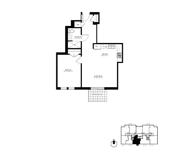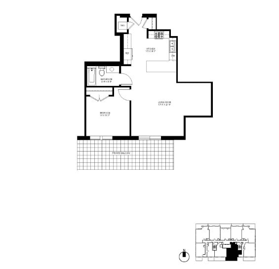 Apartment Model: Floor Plan Type 1bH1 Bedroom, 1 Bath, 583 sq ftAvailable Now![]()