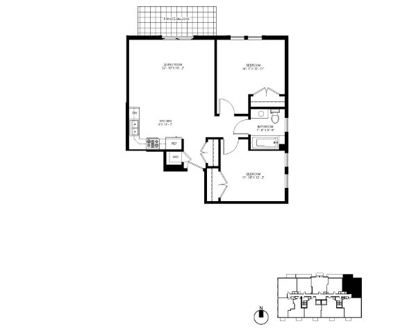 Apartment Model: Floor Plan Type 2bF2 Bedroom, 1 Bath, 887 sq ftAvailable Now![]()