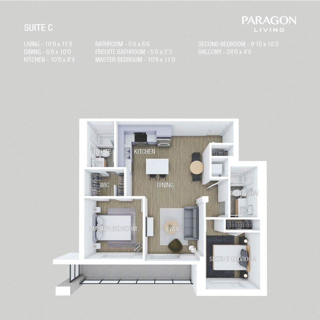Suite C - Floorplan 9 Apartment Unit: 206Apartment Model: Suite C2 Bedroom, 2 Bath, 880 sq ftAvailable June 1, 2026Suite B