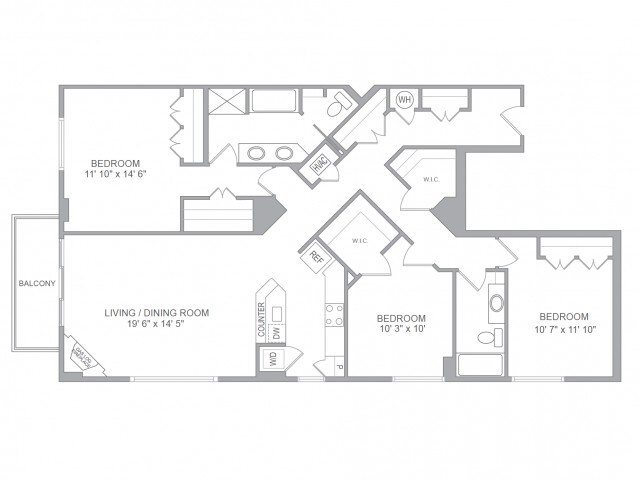 2BR/2BA - Floorplan 2 3 Bedrooms