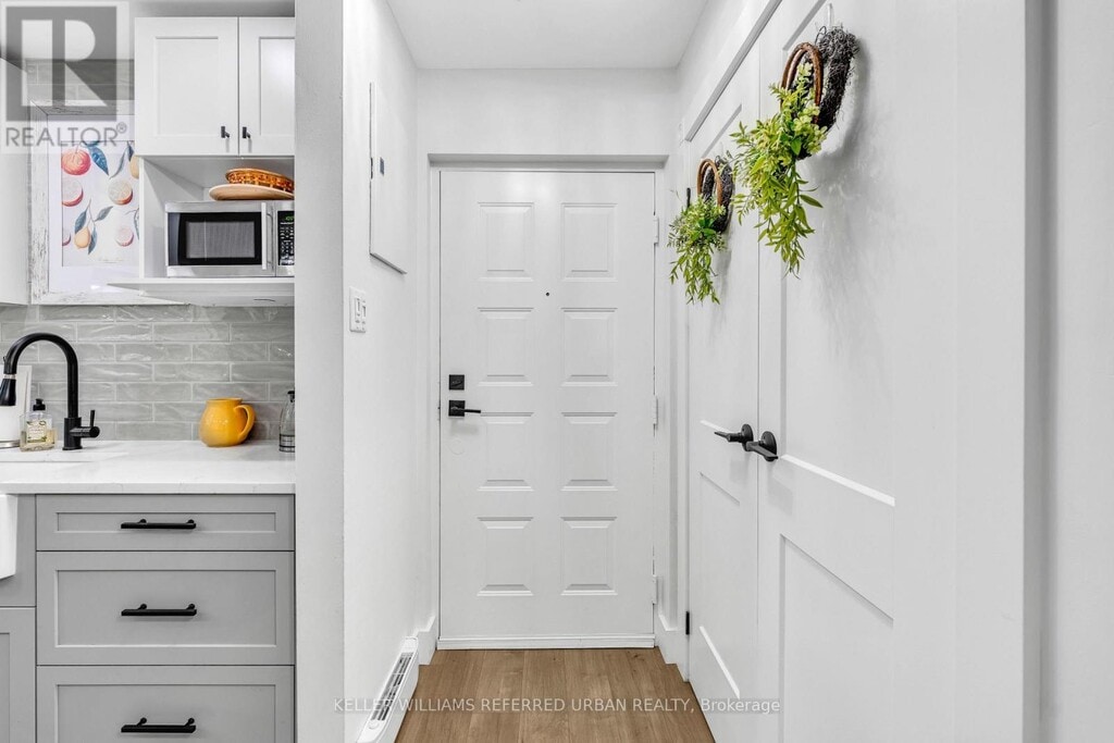 Fully Renovated 1 Bedroom,1 Bathroom Condo in Prime Cobourg Location Right Next to the Beach! This beautifully updated second-floor condo suite is just one block from Coburg's waterfront,boardwalk,and Beach. Featuring a big and bright 637sf,open-concept layout,the unit includes a renovated custom kitchen with stone countertops,stainless steel appliances,tile backsplash,and soft-close cabinetry. The modern 3-pc bathroom offers a tiled walk-in shower,glass door,and upgraded vanity. The roomy,king sized bedroom offers double closets. Enjoy updated flooring,interior doors,lighting,and trim throughout. Located in a well-maintained building with amenities such as an indoor pool,sauna,shared laundry,and a private outdoor lounge area. Steps to the marina,downtown shops,restaurants,and VIA Rail. Come check it out and fall-in-love! (id:63800) ID#: 1983279