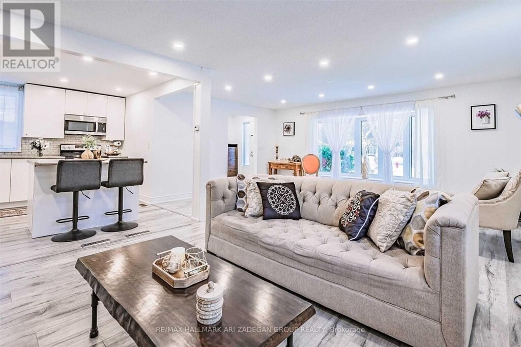 Welcome to this beautifully updated 3-bedroom,2-bathroom main floor unit in the heart of Aurora. Featuring a bright,open-concept layout with modern finishes throughout,this space offers both comfort and style. The renovated kitchen boasts sleek cabinetry,stainless steel appliances,and ample counter space,while the spacious living and dining areas are perfect for entertaining or relaxing with family. Step outside to enjoy your private back deck,ideal for summer barbecues or morning coffee. The home includes two updated bathrooms,generous bedrooms with plenty of natural light,and convenient in-unit laundry.Located on a desirable street,youre just minutes from top-rated schools,parks,shops,restaurants,and transit. (id:52069) ID#: 1419876