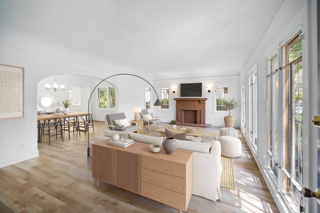 Welcome to 133 S Sycamore Ave #133! This beautifully renovated 1920s Spanish-style apartment seamlessly blends classic charm with modern amenities in a prime location of Hancock Park. Situated on the entry-level of a secure 4-unit building, Unit 133 features a huge floor plan and has been thoughtfully upgraded with new laminate floors, an A/C unit, and fresh paint throughout. The casual yet elegant living room offers a decorative fireplace and an abundance of natural light streaming through picturesque windows. A dreamy arch separates the spacious living and dining areas and leads to an updated kitchen with stainless steel appliances and ample cabinet and counter space. There are 2 generously-sized bedrooms plus 2 full bathrooms. Additional features include an in-unit laundry room with a new washer/dryer and a detached one-car garage, providing secure parking and additional storage. Nestled on a beautiful tree-lined street, this unit is just moments away from local grocery stores, Pan Pacific Park, and endless shops, restaurants, and entertainment on La Brea, Melrose, and at The Grove. This won’t last long – available now! Some photos are virtually staged. No dogs, cats are OK.
