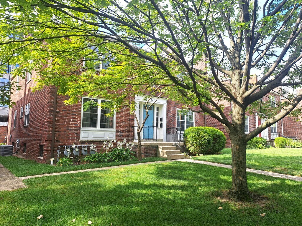 Available immediately. Looking for quiet tenant. Well kept, impeccably clean brick building on quiet, beautiful tree-lined street in the Grandview area. Second floor, one bedroom apartment available in a 4-unit building, small deck off back door overlooking back yard. Front lobby access also, which is secured with deadbolt. Beautiful hardwood floors throughout, A/C, replacement windows, one car garage. Living room feels very large with vaulted ceiling, decorative fireplace, ceiling fan, charming built in shelving, coat closet, and pantry closet off kitchen. Dining area off living room. Cute retro kitchen with new luxury vinyl plank floors, new ceramic backsplash. Bedroom has hardwood floors, ceiling fan light, and closet. Bathroom with storage closet, new pedestal sink. Laundry hook-up in basement, washer/dryer is available to rent. Private lockable storage area in basement. Managed by owner, not a rental company. We respond to any problems within 24 hours. Quiet people only please, if you are a late-night partier, please do not apply. Availability is flexible. Contact us to schedule.