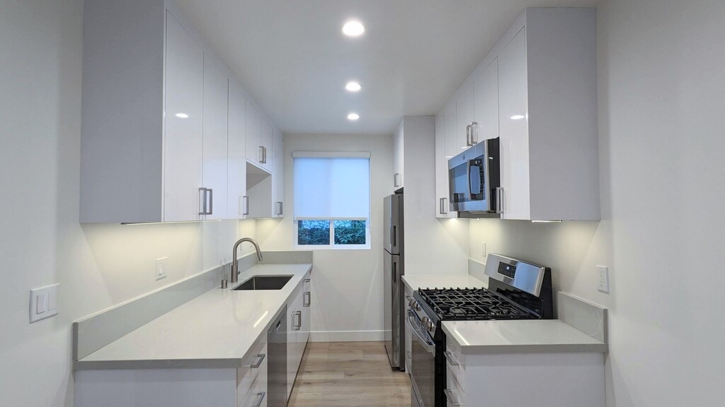 Exclusive 7-unit building in West LA. Impeccably clean brand new interior, everything is nearly new and used for only 1 year. This amazing boutique building seamlessly blends modern design with comfortable living. The unique space features an open kitchen with bar counter, a walk-in shower, Central AC, and in-unit Washer / Dryer. A large private wood deck connects directly to the living room and is generous enough for patio furniture. Perfect for enjoying the best of LA weather! Other special amenities include: - Smart thermostat - Keyless entry & security gate w/ intercom (to be installed) - Recessed lights & LED mirror - Modern privacy shades & bedroom black-out shades - Landscaped grounds w/ common area garden And much more. Private level 2 EV charger can be installed for an additional fee. Brentwood-adjacent location near Wilshire & Bundy. Just a few minutes drive to Santa Monica, Westwood, Sawtelle and the UCLA campus. Close to 405 and 10 freeways. Easy access to supermarkets (Ralphs, Gelsons, Trader Joes), gym, and eateries. Skip the big-box apartment buildings and be the first to live in this unique home!
