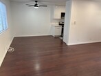 JUST RENOVATED. Brand new kitchen and appliances. Brand new Fridge, oven, microwave, sink, garbage disposer. Includes dish washer. 10 new ceiling recess lights. No need for standing lamps. No popcorn ceiling. New partially renovated bathroom/shower. New blinds. 725 Sq ft. Bright rooms. Very quiet. Second floor. Hardwood Flooring. Laundry room in building. Free water & hot water. One dedicated inside parking space underneath the unit. Will accept one small dog or cat. Negotiable for bigger pets. Big storage in the garage.
