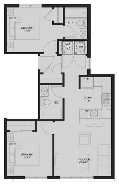 2 Beds, 2 Baths, 1085 sq ftLargest 2 BedroomThis is the largest 2 Bedroom at this PropertyModel Gallery