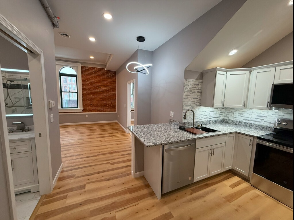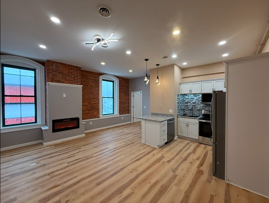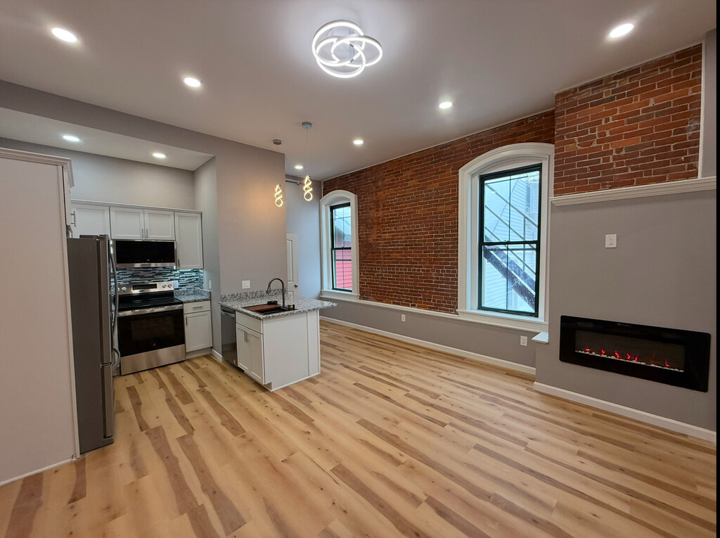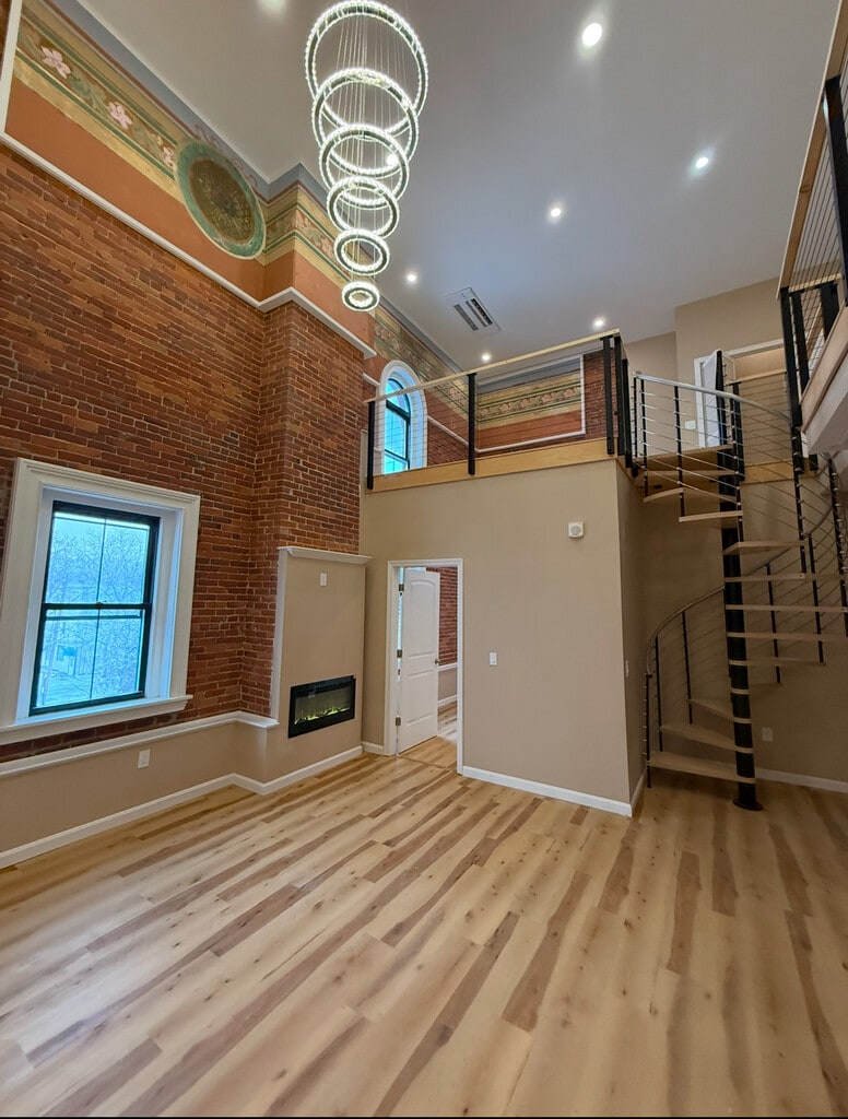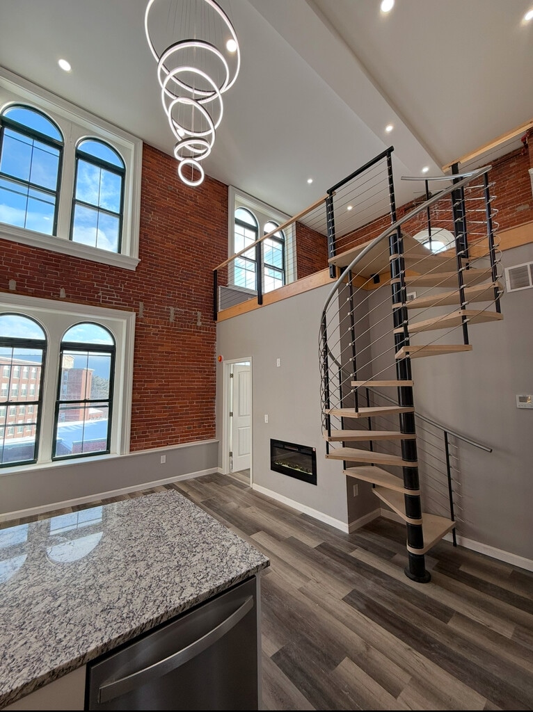 We are pleased to announce the upcoming availability of our newly renovated luxury apartments in the historic downtown of Winthrop, ME. These apartments have the look and feel of brand-new high-end luxury condos in a historic setting. It has the charm and character of a 100+ year old building but with all the conveniences one would hope to find in a high-end luxury apartment. These apartments have undergone a complete renovation by a professional contractor with all new: in unit washer and dryer, granite countertops, stainless steel appliances with dishwasher and glass top stove, fireplace, walk-in-closets, waterproof flooring, modern light fixtures, stylish vanity with an elegant faucet, tile showers with custom shampoo niche and frameless glass shower doors, a waterfall shower head with 6 body sprayers and a hand held wand, bluetooth speaker in the bathroom, under cabinet lighting, light up mirrors in all the bathrooms, kitchen cabinets with crown molding, and many other amenities. The apartment comes with elevator access and there is also 200'+ of waterfront out back where we will be setting up a sitting area in the spring. Central heat and air conditioning, hot water, and trash are all included in the rent. Contact us to set up your personal tour. Call or text for quickest response. We have a total of 7 apartments that are newly available. We have 1 apartment that is 1 bedroom with 1 bathroom, 5 apartments that are 2 bedrooms, 2 bathrooms and 1 apartment that is 3 bedrooms, 1 bathroom. Four of the 2 bedroom apartments have a loft style bedroom on the second floor with its own bathroom and walk-in-closet and modern cable railings, overlooking the living room kitchen area with 20’ ceilings.