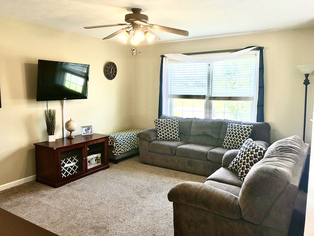 Well kept home has a new Samsung Stainless Steel Fridge, Samsung Stove, new LG Washing Machine, new Water Heater, and a new Trex Deck. The property has a total of 4 bedrooms and 3 full baths. There are 3 bedrooms and 2 baths on the upper level and 1 bedroom and 1 bath on the lower level. The upper level has an open kitchen, dinning, and living room and the lower level has a large family room, laundry room, and a storage room with built in shelves. The back yard is fully fenced and backs to the woods and community walking trail. Pets are permitted on a case by case basis.
