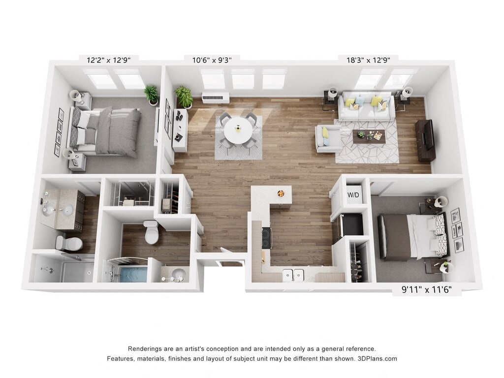 Apartment Model: 2X2$2,2002 Bedroom, 2 Bath, 1119 sq ftAvailable January 6, 2026![]()