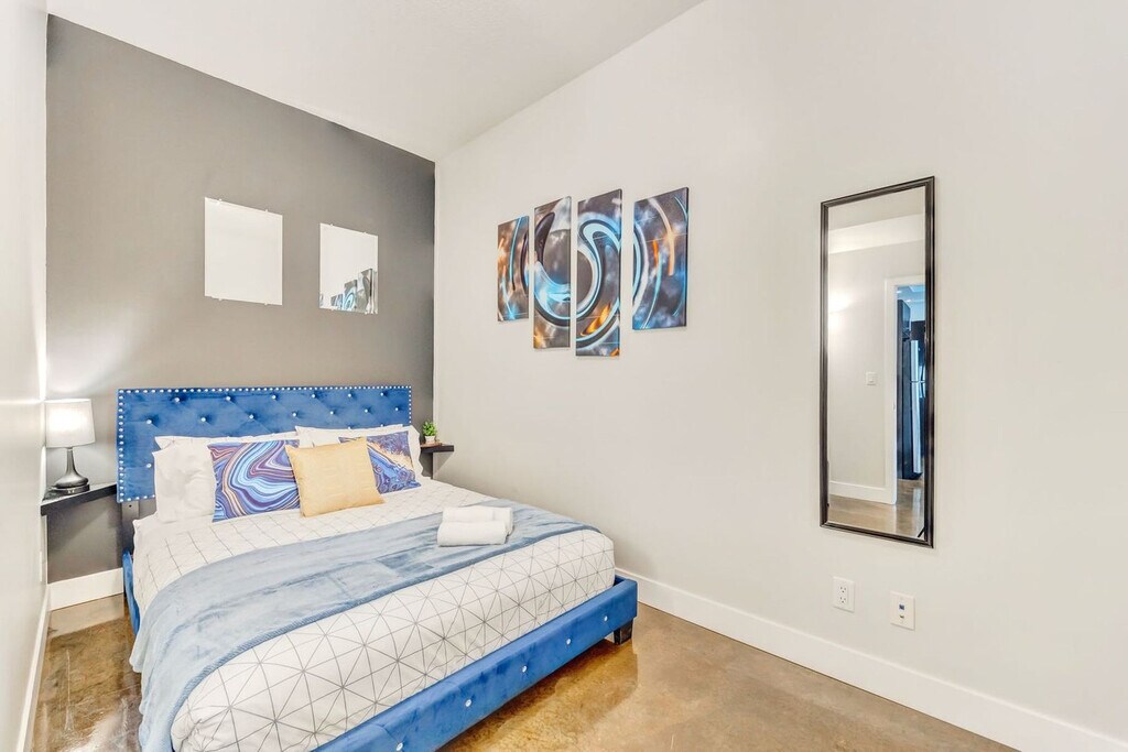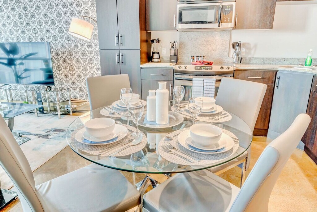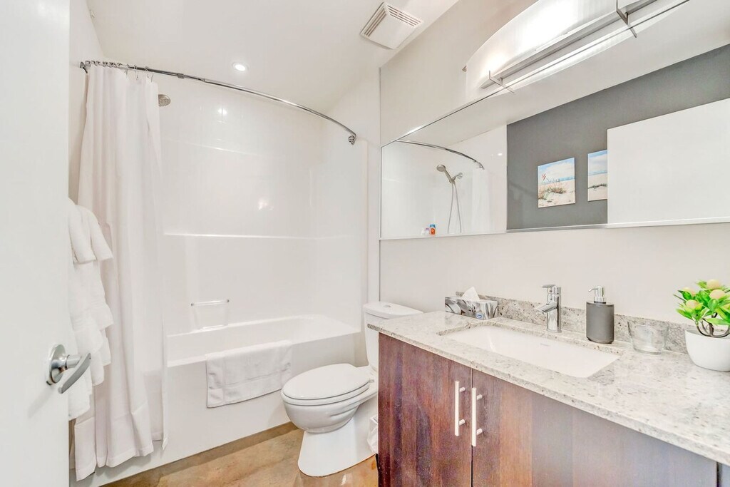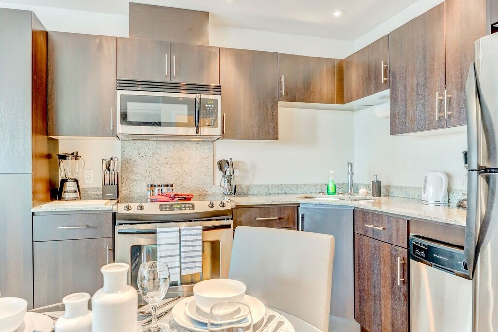 Soak in breathtaking city views from the floor-to-ceiling windows of this stylish downtown condo. This spacious 2-bedroom retreat sleeps up to six guests with a cozy pull-out sofa. Enjoy an open-concept layout, a fully equipped kitchen, in-suite laundry, high-speed Wi-Fi, and a private balcony. Secure on-site parking is available. Located just steps from Stampede Park in the vibrant Beltline neighborhood, this condo offers the perfect blend of city excitement and homey comfort. The apartment features two bedrooms and two bathrooms, including one en-suite. The fully equipped kitchen boasts high-end appliances and granite countertops, while the dining area seats up to four. Relax in the living room with a 55" Smart TV and high-speed internet. Central air conditioning and in-suite laundry add to the convenience. The spacious balcony offers outdoor dining with a patio table and two chairs. On-site underground parking is available for one vehicle at $20 per day. Please inquire for further details about obtaining a parking pass. Nestled in Calgary’s trendy Beltline neighborhood, this apartment is perfectly located just steps from outdoor tennis courts and public parks, and within walking distance of Stampede Park. You'll be just a few blocks from downtown, surrounded by the energy of the Design District. Nearby attractions include Calgary Tower, Devonian Gardens, and Prince's Island Park, among others. Minor repairs are currently underway at the property, and the dishwasher is unavailable. Key pick-up is required at an alternate location before 10:00 PM, and ID verification may be required after booking. Parties, events, and smoking or vaping of any kind are strictly prohibited, with violations resulting in a $150 fine. Pets are not allowed, and evidence of pets will result in a fine. Lost or stolen keys will incur a $250 replacement fee. Quiet hours are between 10:00 PM and 9:00 AM. Upon departure, ensure the home is tidy, with all garbage bagged and recycling gathered by the sink. Late check-outs will result in a $150 fine per additional hour. SECURITY DEPOSIT A $100 refundable security deposit is required to be paid a day before check-in to cover any incidental charges or damages. This deposit will be fully refunded within 10 business days after checkout, pending a room inspection. By proceeding with your booking, you agree to the terms regarding the security deposit. Registration Number: BL266118