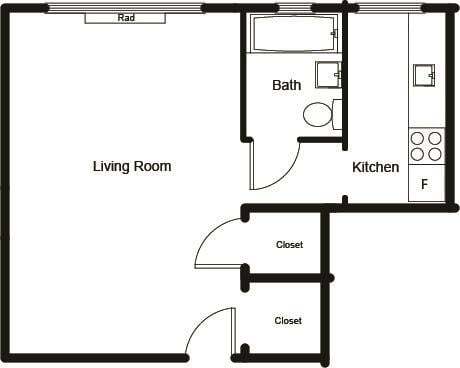Studio, 1 Bath, 349 sq ftAvailable NowModel Gallery