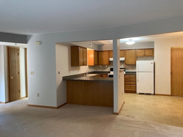 This huge 880 SF condo apartment at 135 W Oak Leaf Dr features 1 bedroom with huge walk-in closet, bathroom and in-unit washer dryer. Rent includes free reserved underground parking spot! The living room offers ample space for relaxation with own private patio. The kitchen is equipped with essential appliances, including a refrigerator, oven, and dishwasher, facilitating convenient meal preparation. The bathroom includes a tub/shower combination for practical use. Additional amenities include air conditioning, in-unit washer/dryer, and storage options. The property is smoke-free, ensuring a clean-living environment. The exterior is well-maintained, contributing to a pleasant overall appearance. Located adjacent to the Oak Creek nature preserve and near the Oak Creek parkway.