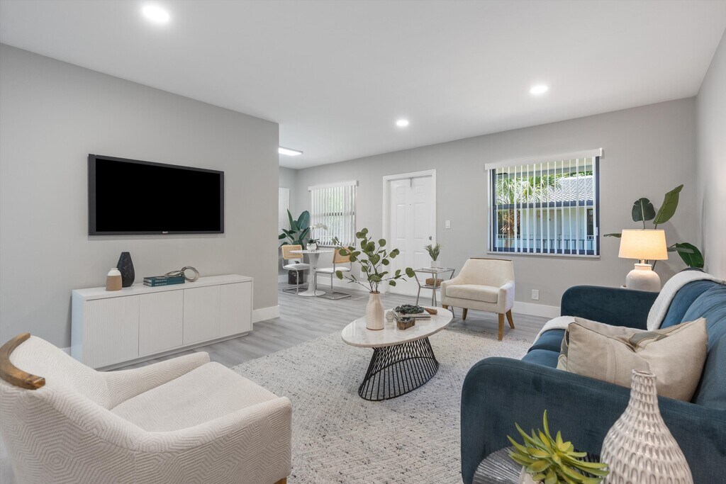 We are excited to announce a newly renovated 2-bedroom, 1-bathroom apartment now available in the desirable Middle River Terrace neighborhood of Fort Lauderdale. This property is under new ownership and has undergone extensive renovations to offer a fresh and modern living space. Both beautiful and spacious, featuring brand new LVT flooring throughout, hurricane impact windows and central a/c. The kitchen has been completely updated with new cabinets, elegant quartz countertops, and a full suite of stainless steel appliances, including a bottom freezer refrigerator, stove/range, dishwasher, and microwave. Both bedrooms are equipped with ceiling fans for air circulation. The modern bathroom features glass subway tiles, a deep bathtub and shower combination, vanity with a large mirror with excellent lighting. For your convenience, assigned parking is available, and there are laundry facilities located on the premises. Fast and Easy approval process. Please call or text Julia OR Jordan with any questions or inquiries. Pet Policy: One small pet under 35lbs OK NO short-term rentals, NO subleasing, NO vacation rentals