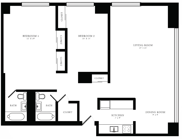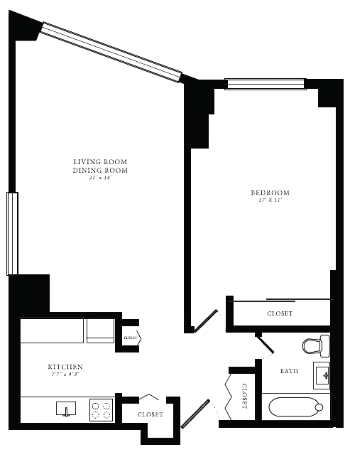 Tier 10 (Studio) - Floorplan 2 1 Bedroom