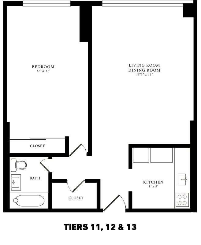 Tier 02/03/07/08/11/12/13/17/18 (1BR/1BA) - Floorplan 2 ![]()