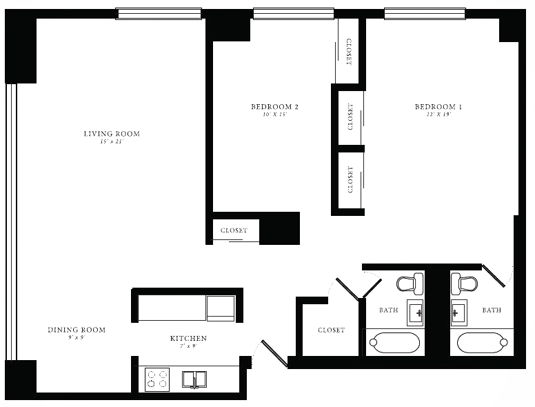 Tier 02/03/07/08/11/12/13/17/18 (1BR/1BA) - Floorplan 1 ![]()