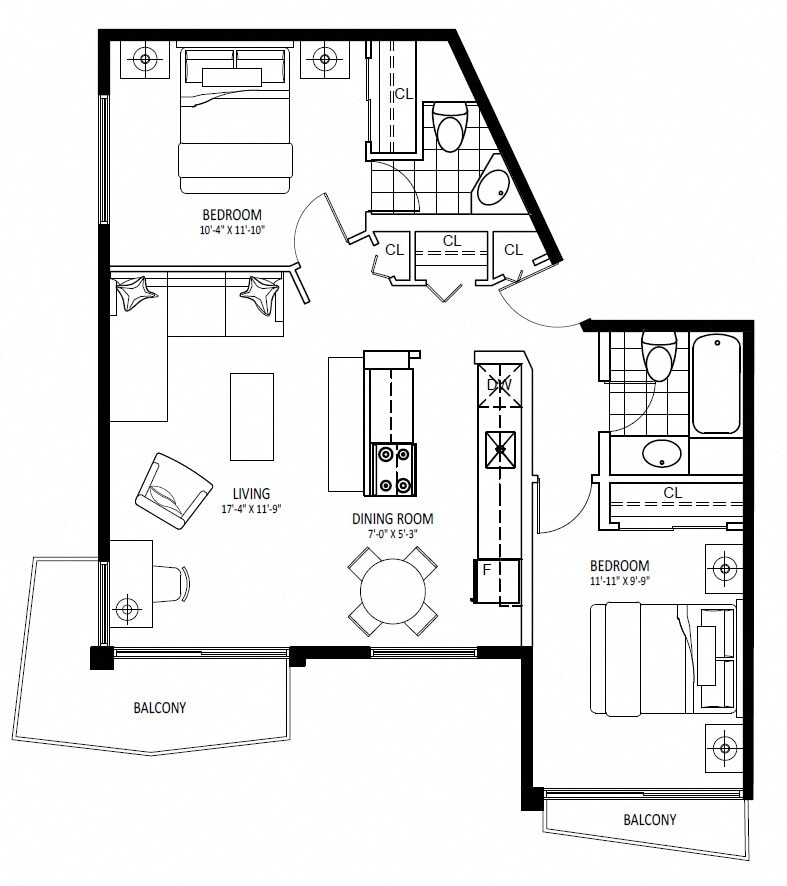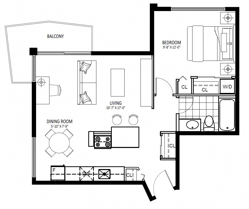 1355 West 14th - Plan A - Floorplan 10 Apartment Unit: 601Apartment Model: 1355 West 14th - Plan A2 Bedroom, 1 Bath, 792 sq ftAvailable Now