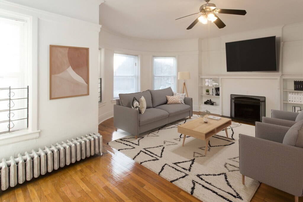 Apartments in Hyde Park across the street from the University of Chicago campus are a rare find. 1358 E. 58th Street delivers. These Hyde Park 4 bedroom rentals include conveniences like washer/dryer, built-in bookshelves, a dining room, hardwood floors and a dishwasher. Curved bay windows flank a Greek Revival entry that extends into large private balconies overlooking the park at our Hyde Park apartments. The soft lines of the building's maize-colored brick complement the quiet, tree-lined street and the French-inspired limestone ornamentation adds an appropriate air of distinction to this classic home, while the unobstructed southern and eastern exposures ensure bright, airy interiors. Please contact a member of our friendly leasing staff if you would like to set up a tour of these picturesque apartments in Hyde Park Chicago- we would love to welcome you to our neighborhood! Our team is dedicated to your building's maintenance and your resident needs. All of our Hyde Park apartments receive 24/7 emergency maintenance service, a centralized resident services center, and an app for service requests, neighbor conversations, a resident marketplace, and discounts to local businesses.