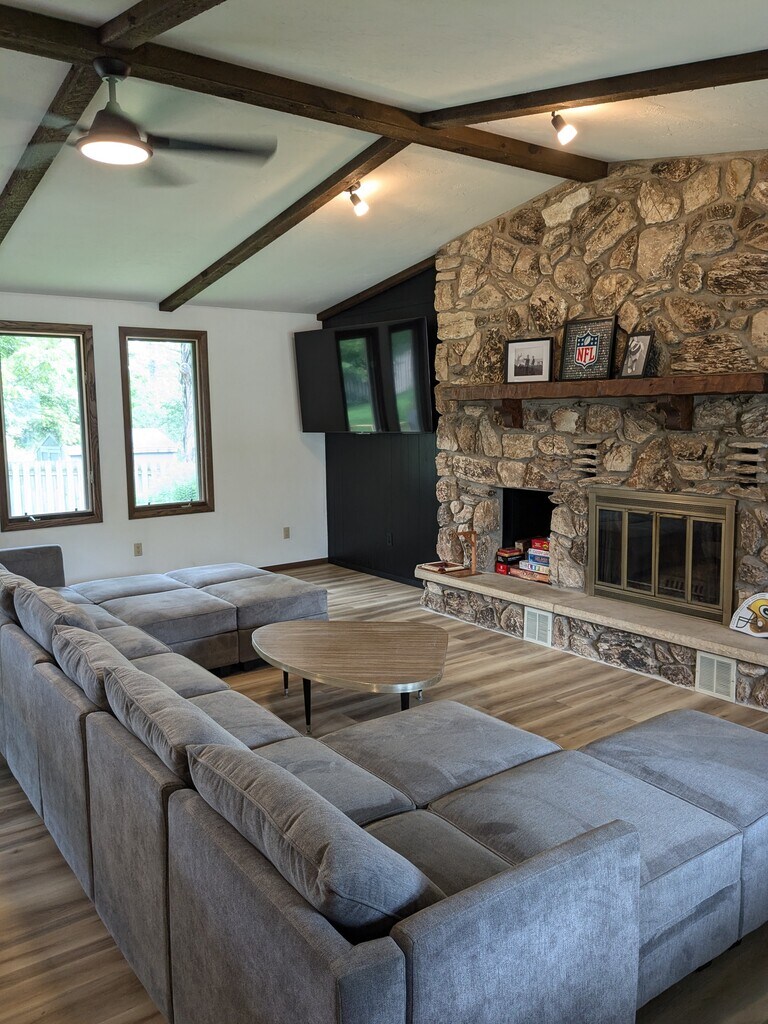 You will be close to everything when you stay in our home! Only a 5 minute walk to Lambeau Field, live entertainment, food and recreation. The home is fully furnished, with 4 bedrooms, 2 full baths, a large kitchen with dine-in island, and a living room. Full access to laundry and a 2+ stall garage. The living room is designed for entertaining, with two 75" TVs, a large sectional couch (provides additional sleeping space), and black and white photography cheering on the Packers. The kitchen has a fun, modern feel, with abundant black cabinets and well-stocked items for cooking. Additional sleeping space in the basement is available upon request at no additional charge. However, the basement is in the process of being finished for April 2025; it will offer additional sleeping space for up to 6 people. This entire home can be rented, or shared with 3-4 tenants. To learn more about this property, contact us to schedule a tour.