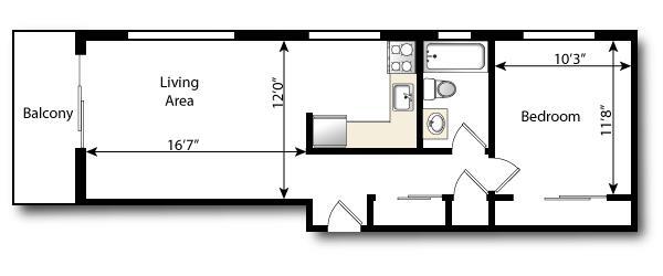 Studio, 1 Bath, 400 sq ftModel Gallery