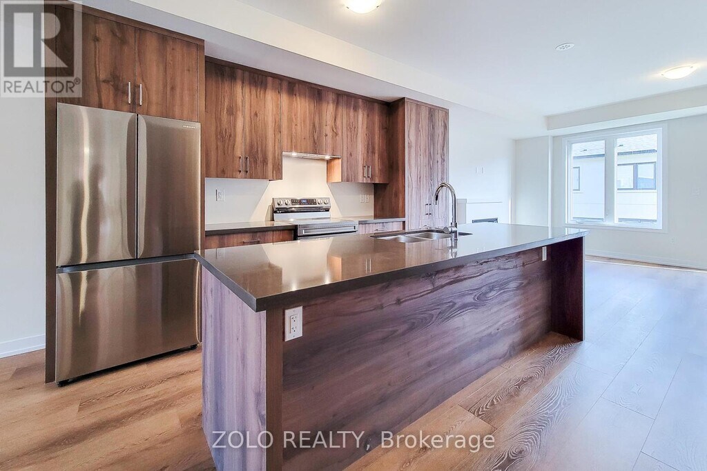 Brand-new freehold 3-storey end unit townhouse offering 2332sq.ft. of modern living space. This home features 4 bedrooms,4 bathrooms,and sleek laminate flooring throughout. The ground level includes a 4th bedroom with a private entrance from the garage,ideal for guests or a home office. The second floor boasts an open-concept layout with a contemporary kitchen,stainless steel appliances,large center island,dining area,and a bright great room with walk-out to balcony. Perfectly situated beside 16 Mile Creek nature park,within walking distance to Oakville Hospital,and just minutes from major highways,public transit,shopping,dining,and entertainment. Unfinished walk-out basement offers excellent future potential. (id:52069) ID#: 2092681