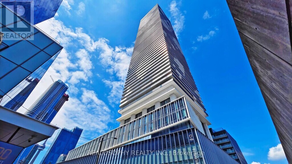Welcome to Sugar Wharf Condos,where elevated city living meets breathtaking views. This bright,spacious two-bedroom,2 bathroom suite offers 798 sq ft of thoughtfully designed living space on the 43rd floor,showcasing stunning northeast exposure with glimpses of the lake. Enjoy seamless indoor-outdoor living with a rare 300+ sqft wrap-around balcony,perfect for taking in panoramic city and water views from multiple angles. The functional layout provides comfortable separation between bedrooms,ideal for professionals or couples.This well-appointed unit features ensuite laundry for added convenience and a modern,open-concept design that maximizes natural light throughout. Located in one of Toronto's most desirable waterfront communities,you are just steps to the waterfront,Harbourfront Centre,and an endless selection of shops,restaurants,and everyday amenities. Commuting is effortless with easy access to public transit and the downtown core. Experience the perfect balance of lifestyle,location,and luxury in this exceptional high-rise residence. (id:52069) ID#: 2170618