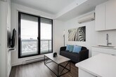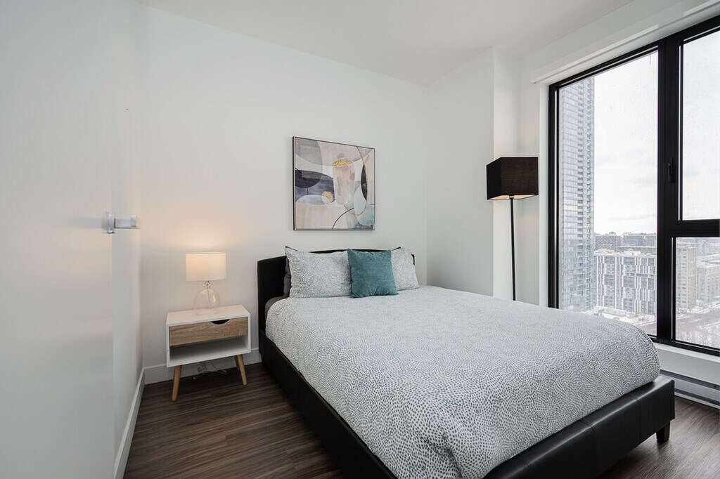 Located in the bustling downtown core of Montreal, adjacent to the Bell Centre, this property epitomizes luxury and practicality, setting a new benchmark for urban living, especially tailored for young professionals, newcomers, and students. Situated mere steps away, residents enjoy easy access to the attractions of the Golden Square Mile and the historic charm of Old Montreal. This development fosters an environment ideal for both academic pursuits and professional development. This new condo is very well located near the Bell Centre, just steps away residents have access to the Golden Square Mile’s attractions. It features 1 bedroom with a queen bed and 1 bathroom. Indoor parking with in/out privileges is available for an additional fee, depending on your length of stay. We offer a variety of cleaning services that include bi-weekly or monthly options, available for an extra charge. Residents enjoy easy access to the attractions of the Golden Square Mile and the historic charm of Old Montreal, making it an ideal location for both academic pursuits and professional development. No parties of any kind or loud noises that can alter the harmony of residents are allowed. No smoking of cannabis, cigarettes, or any kind inside the apartment, balcony, or the building. Care for your home away from home. The apartment offers shared workspaces, a conference room, and a workspace with a view, making it ideal for remote work.