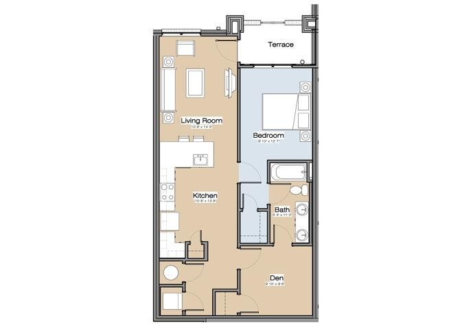 Apartment Model: Floor Plan E One Bedroom / One Bath1 Bedroom, 1 Bath, 752 sq ftAvailable Now![]()