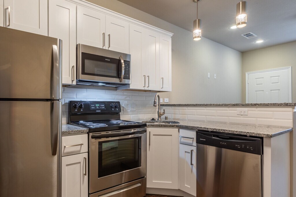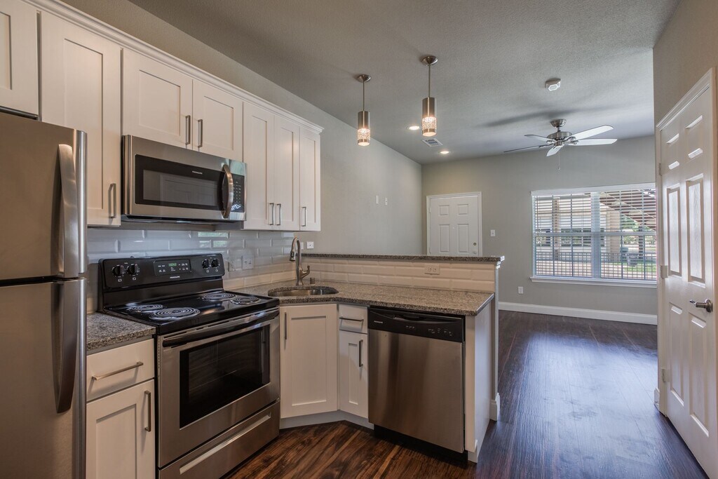 These beautiful one- and two-bedroom apartments are within walking distance of UNT and come complete with microwaves, stoves, dishwashers, and a stackable washer and dryer in every unit. Outfitted with laminate flooring and granite counter tops, these apartments are the perfect place to call home.