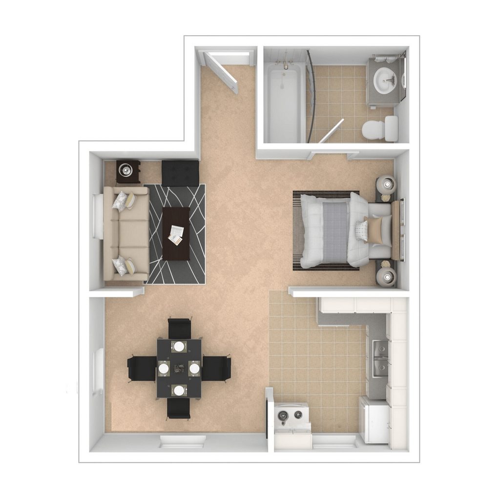 Studio, 1 Bath, 500 sq ftModel Gallery