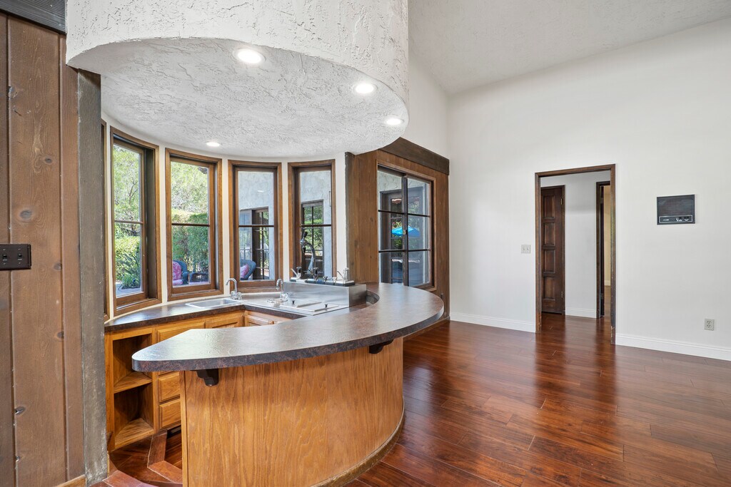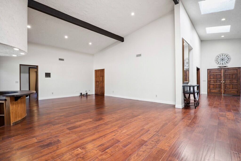 Nestled within the prestigious guard-gated community of Bell Canyon, this stunning custom estate offers nearly 7,000 sq. ft. of luxurious living space. The grand living room boasts soaring ceilings, breathtaking mountain views, and an impressive four-way open fireplace, creating a dramatic focal point. Flowing seamlessly from the living room is a spacious family room with an adjacent sitting area, wet bar, and additional fireplace, perfect for entertaining. The main level features a private master suite complete with its own fireplace, dry sauna, and spa-like amenities, alongside four additional bedrooms, three and a half bathrooms, and a steam shower. The lower level offers even more versatility with a private-entry guest suite and a separate wing featuring two additional rooms, a bar, and a kitchenette—ideal for extended family or guests. Outdoors, enjoy an entertainer’s paradise with a newly re-plastered pebble pool, built-in barbecue, and ample space for horses. The expansive grounds also include a four-car garage, RV parking, a circular driveway, and room for multiple cars and toys. Bell Canyon residents enjoy an exceptional lifestyle with access to equestrian facilities, tennis courts, and miles of scenic hiking and riding trails. This estate truly blends elegance, comfort, and entertainment in one remarkable property.