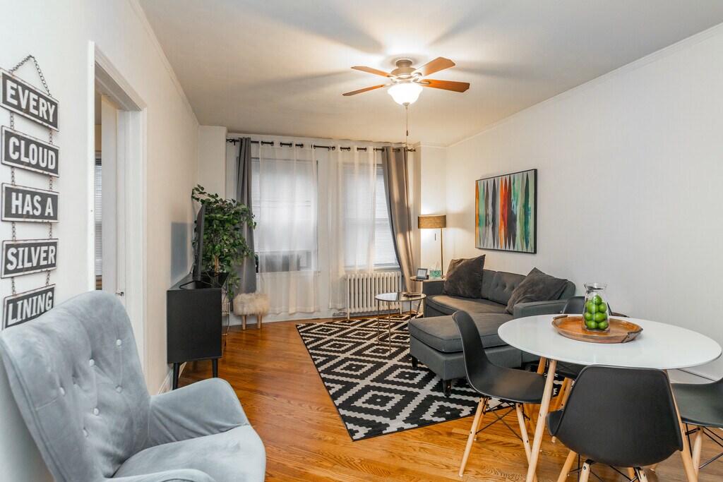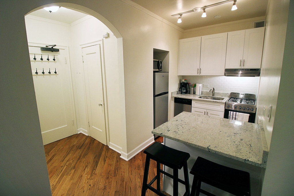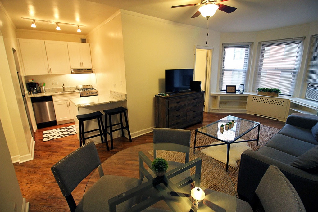 August 7, 2020We've lived here for one year now and we've loved it. Our unit is beautiful - I gasped the first time we walked in and saw the high ceilings, white everything, and light pouring in the big windows. And since the building allows using nails (provided you fill them later), we've been able to make our space even more homey. We love having bike storage and a gym, and we LOVE our rooftop deck. Trash, recycling, and mail are made easy. Andrew in the office is a great guy and puts you at ease during the ...move-in process. Garcia from maintainance has been the bomb with the repairs we've needed - it's always been done the same day. We've only been able to hear our neighbors like twice. It's an old building, so you will have things like some chips in the paint or a noisy radiator, but for us it's been worth the charm. Biggest 3 drawbacks to us are they don't allow dogs, there's no on-site parking, and there's no storage in the basement or anything. But you also can't beat this location! Right down the street from Jewel and now Aldi, tons of restaurants, a quick walk to the Moody campus if you're a student there, and a very quick walk to the Mag Mile and Water Tower Place. Certainly shop around for the best option for you, but keep this one on the short list.Read MoreReview from Apartments.com