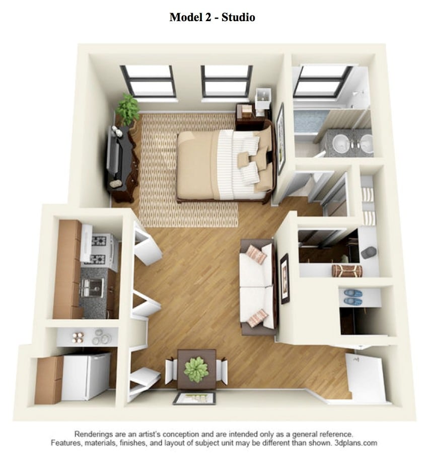 Studio, 1 Bath, 390 sq ftModel Gallery