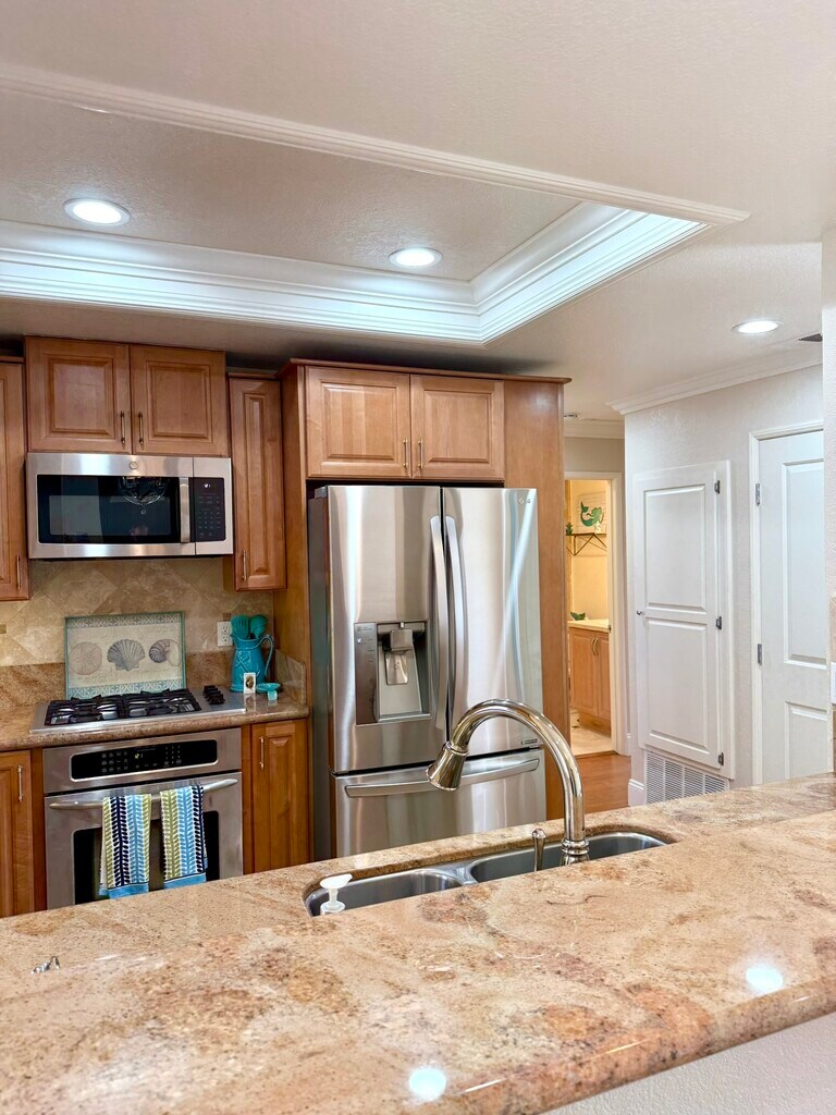 Welcome to your slice of paradise with amazing Ocean views! Located in the desirable downtown HB area, but far enough away from the lively atmosphere of Main Street, this fabulous upper unit, single level (elevator), end unit, spacious and gorgeous 2bd, 2ba condo with vaulted ceilings is something you don't want to miss! Along with fresh paint throughout, you will see the updated, open and bright kitchen with granite counters, stainless appliances, including refrigerator, and tons of cabinets. The bathrooms are spacious, fresh and updated as well. This home has been meticulously cared for, including Plantation shutters throughout, European doors, large Haiku fans in all the rooms, central heating and air conditioning, recessed lighting, tile/hardwood flooring throughout, and custom closets in both bedrooms! There is a large, private balcony complete with a storage closet, roll down shade for sunny days, and direct ocean views! Parking is a breeze with 2 underground, designated side by side spots. The garage includes bicycle storage ability. This gated complex also features a fabulous community pool and jacuzzi! Walking distance to the sand, local restaurants and shopping. This home is a must see!