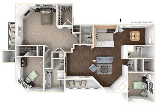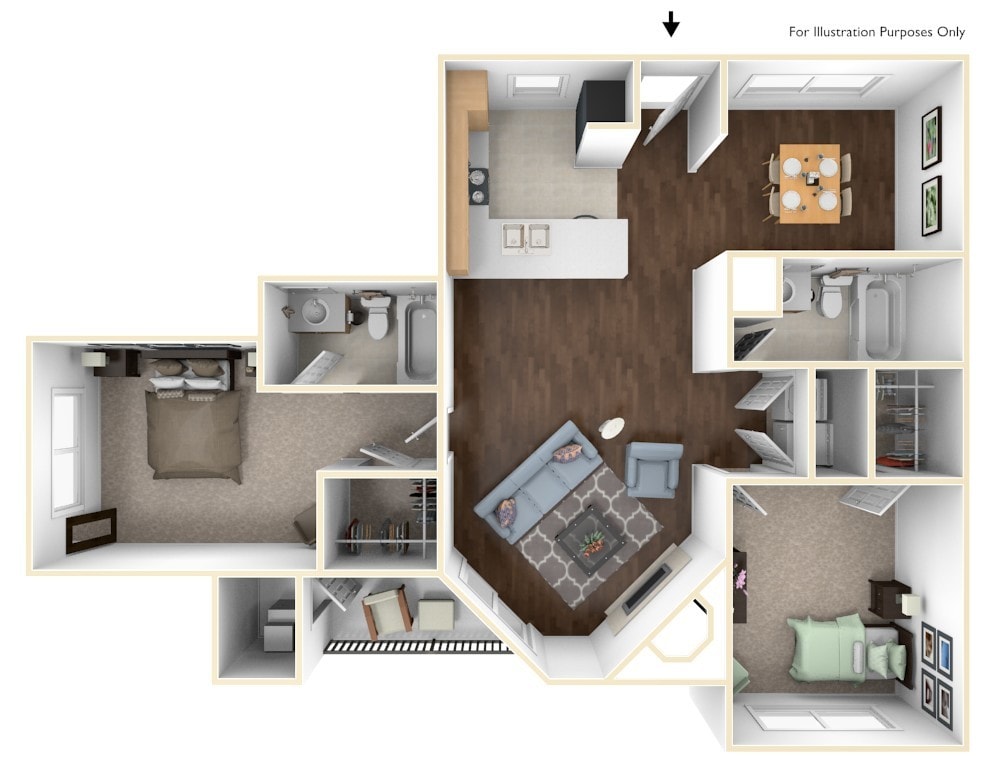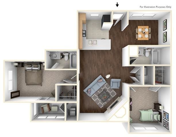 1 Bed, 1 Bath, 893 sq ftAvailable NowLargest 1 BedroomThis is the largest 1 Bedroom at this PropertyModel Gallery