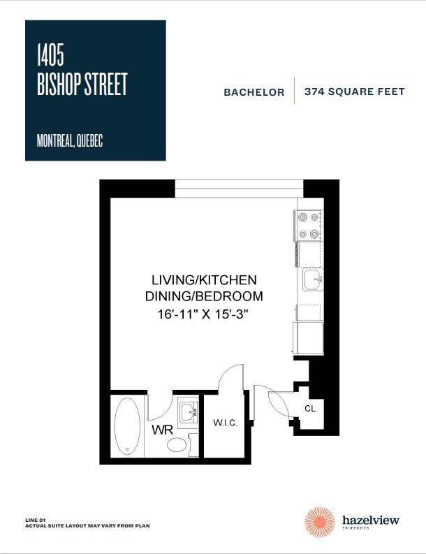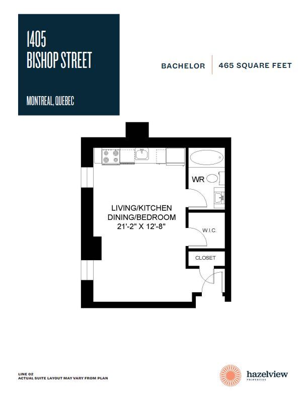 1405 Bishop Located in a lively, high pedestrian area at the corner of Saint Catherine Street, in proximity to all necessities - museums, universities, Guy-Concordia metro station, Victoria Square, shops, cinemas, restaurants, and many more.1405 Bishop Street offers high ceilings units and exceptional natural light with large oversized new windows to ensure peace of mind and quietness in one of the most vibrant neighborhoods of Montreal.