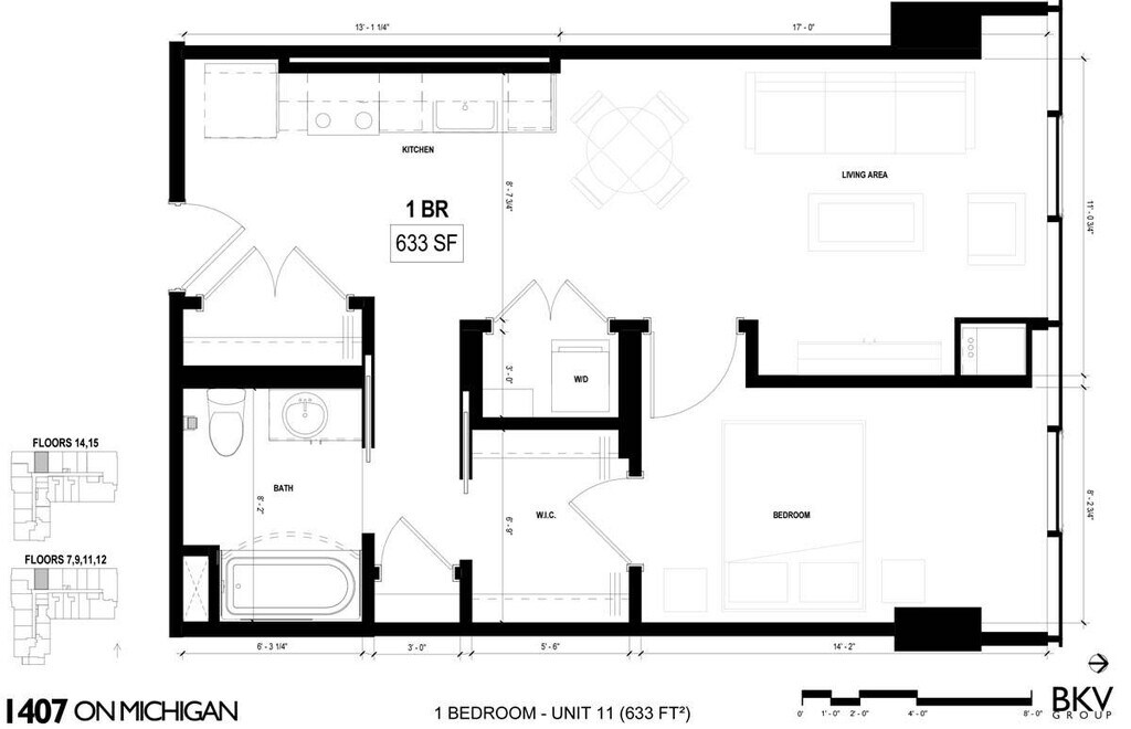 Studio to 3 Bedroom Apartments at 1407 on Michigan currently range from $1,948 to $6,304