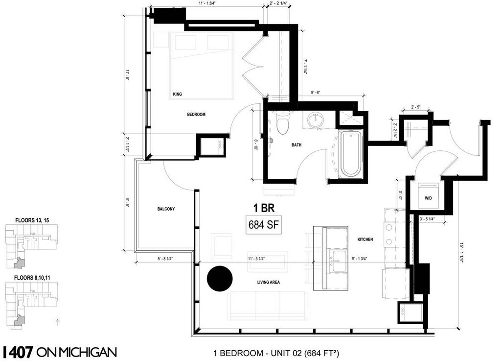 1407 on Michigan offers Studio to 3 Bedroom apartments starting from $1,948 and having 436–1,699 sq ft. Here is the current pricing and availability: