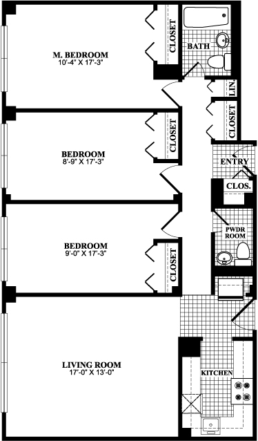 Apartment Model: Three Bedroom One and One Half BathroomCall For Rates3 Bedroom, 1.5 Bath, 1060 sq ftUnavailable![]()