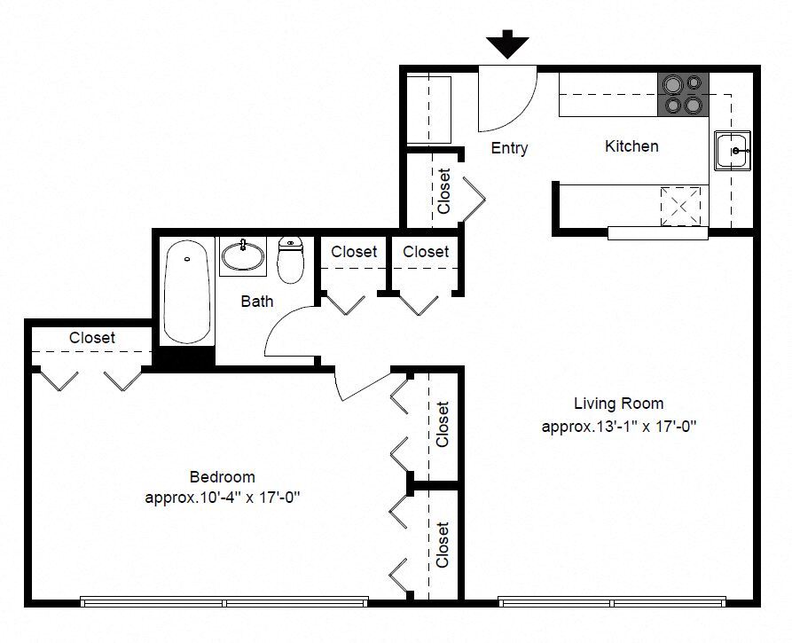 One Bedroom One Bathroom - Floorplan 10 Apartment Unit: 10AApartment Model: One Bedroom One Bathroom$2,9001 Bedroom, 1 Bath, 557 sq ftAvailable Now![]()