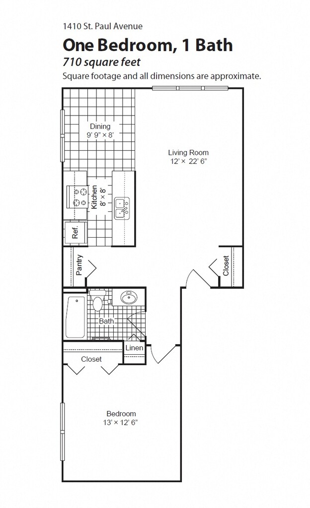 1 Bedroom 1 Bath - Floorplan 1 2 Bedrooms