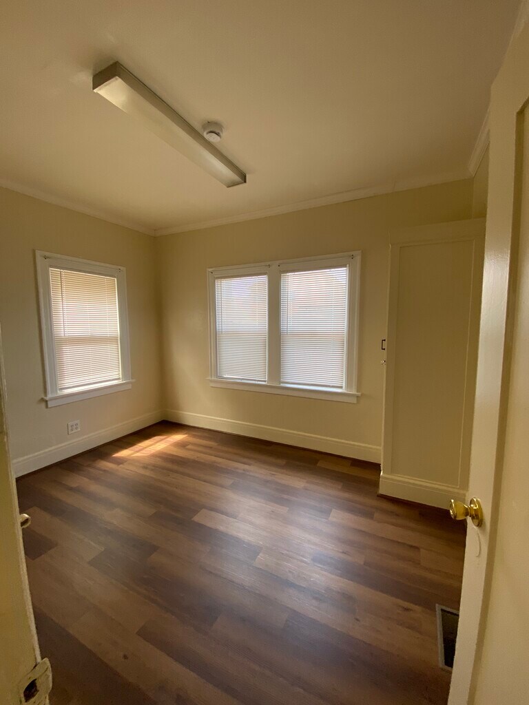 Light and bright large downstairs unit. Completely remodeled bathroom with tub/shower. New kitchen and new flooring throughout. Walk to elementary, middle and high schools. Grocery store and laundromat one block away. Near restaurants, services and numerous bus stops. One parking spot included. Water and gas for hot water included. Section 8 accepted.