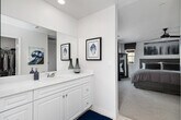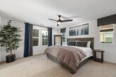 Gated community, two story, three bed, plus bonus loft, private park, guest parking, two car garage, pet friendly with built in dog door. Built 2019 one owner. Central air and heat. All lights are LED, tankless water heater. Private security. Bottom floor is open floor plan with industrial grade tile and upgraded baseboards. Not Section 8 qualified. Not furnished. 3 miles from SOFI. Contact for early viewing, and possible early occupancy date.