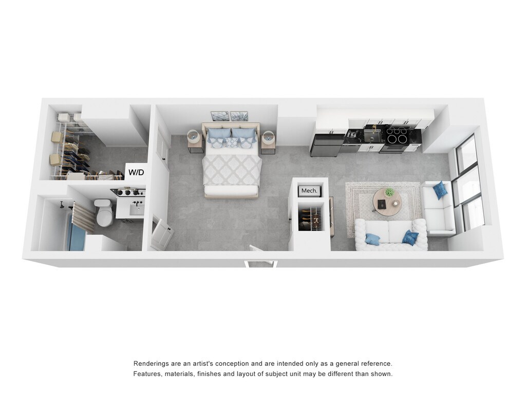 Studio, 1 Bath, 606 sq ftAvailable January 9, 2026Model Gallery